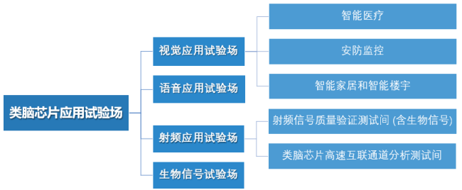 平台类脑芯片应用试验场通过建设典型应用包括视觉、语音、射频和生物医学信号的芯片测试与验证实验室,拉近芯片到实际应用,帮助芯片合理规划,为平台自研项目和扶持项目提供必要的硬件测试环境,使项目聚焦于核心技术研发,降低研发成本,节省项目本身的必须投入,提高未来产品的竞争力。