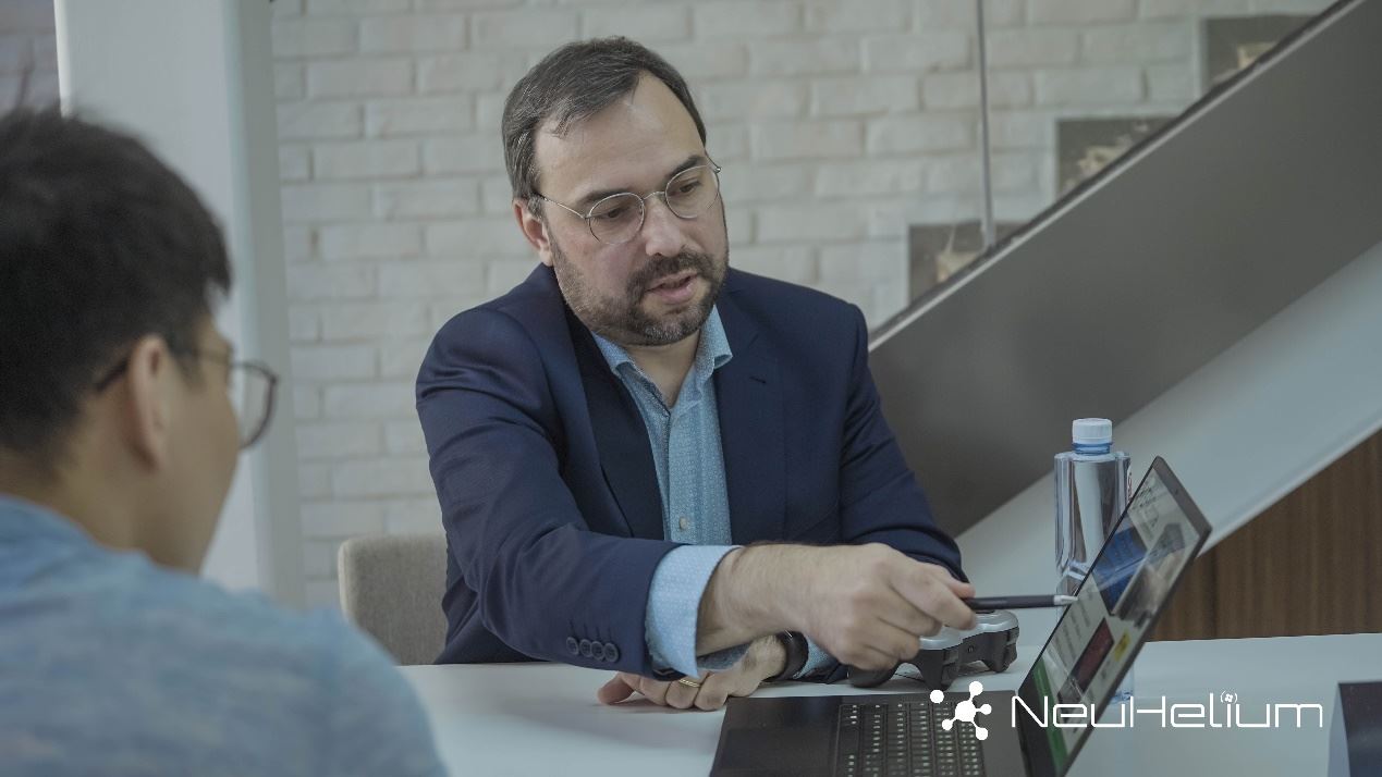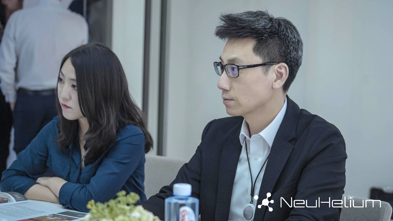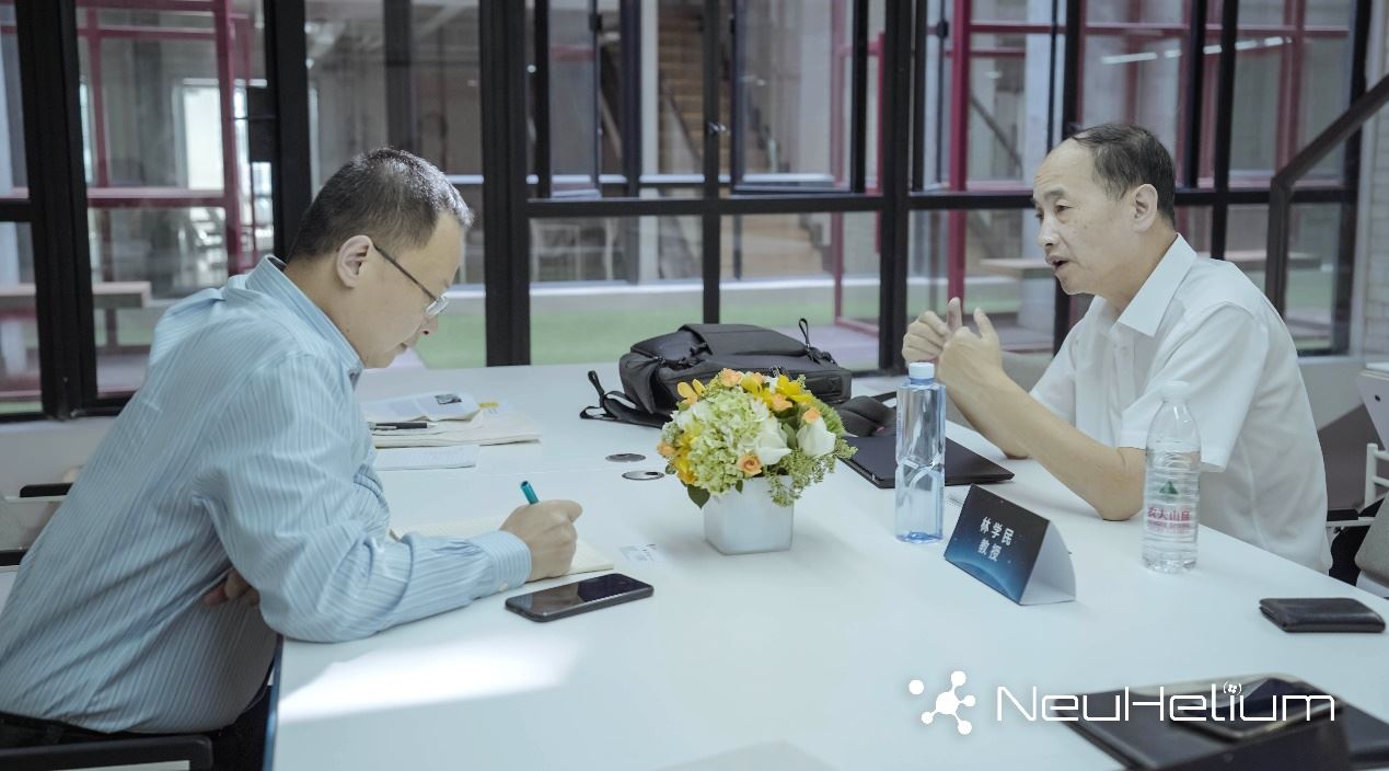 新氦类脑智能平台常务副总经理梁龙飞与林学民教授正进行交流